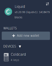 The process of creating a Liquid Hotwallet is very similiar to creating a Bitcoin-Core Hotwallet. First you need to create a Hotwallet-Device Add new device -> Elements Core (hot wallet) -> Continue -> Enter Name -> Continue (Don't forget to note the seed).