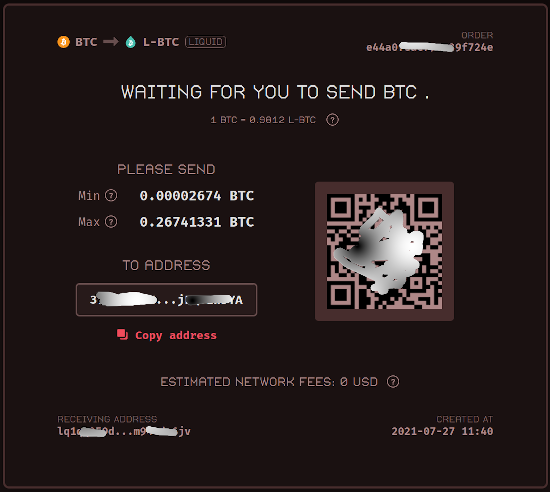 As an example, let'S choose sideshift.ai to swap some BTC to LBTC.